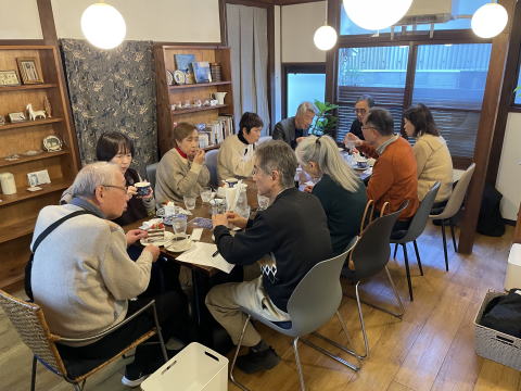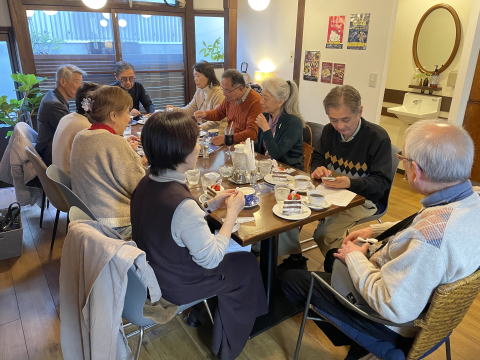 美味しいお茶とお菓子をいただきながらの時間はあっという間です。ちなみに今回の参加者は14人(男性5人女性9人)。お茶のお供は「フランボワーズのメレンゲが乗ったチョコレートスポンジの苺ショートケーキ」でした。